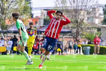 Ciudad de México, 29 de noviembre de 2025. , durante el partido correspondiente a la vuelta de la Final del torneo Apertura 2025 de la Liga BBVA MX categoría Sub 15, entre las Águilas del América y las Chivas Rayadas del Guadalajara, realizado en Copa. Foto: Imago7/ Mauricio Ruiz