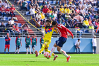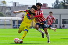 Ciudad de México, 29 de noviembre de 2025. Rodik Chile (D), durante el partido correspondiente a la vuelta de la Gran Final del torneo Apertura 2025 de la Liga BBVA MX categoría Sub15, entre las Águiilas del América y las Chivas Rayadas del Guadalajara, realizado en Coapa. Foto: Imago7/ Alexis Chavez