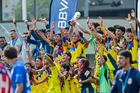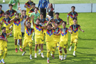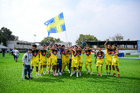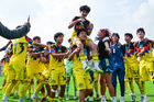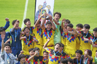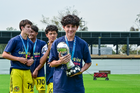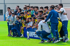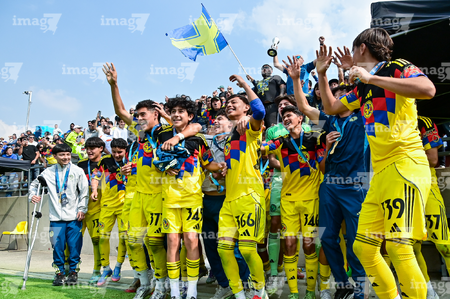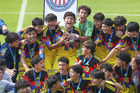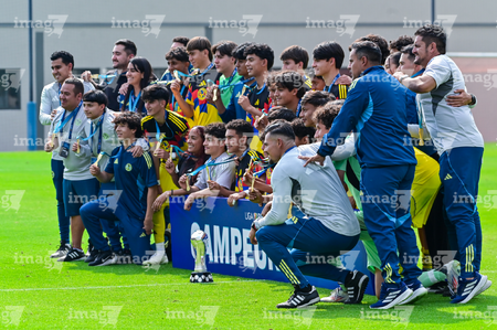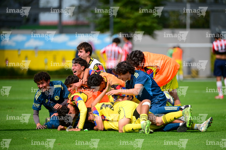 Ciudad de México, 29 de noviembre de 2025. Jugadores del América Sub 15 en festejo, durante el partido correspondiente a la vuelta de la Final del torneo Apertura 2025 de la Liga BBVA MX categoría Sub 15, entre las Águilas del América y las Chivas Rayadas del Guadalajara, realizado en Copa. Foto: Imago7/ Mauricio Ruiz