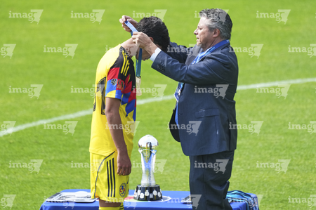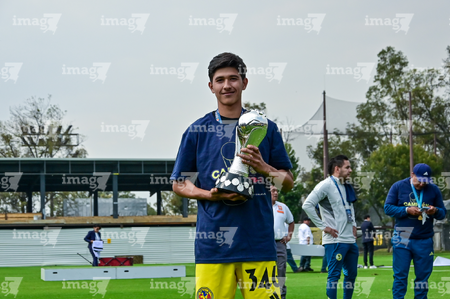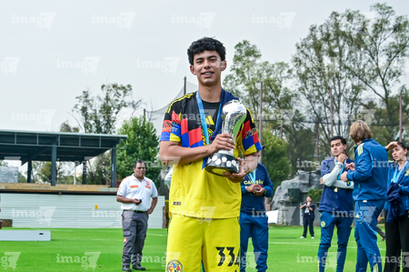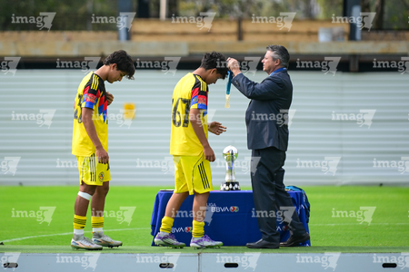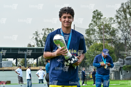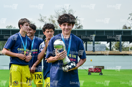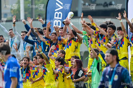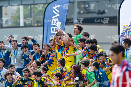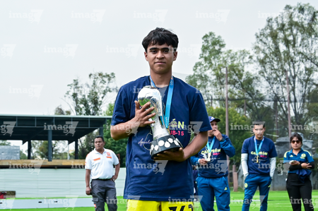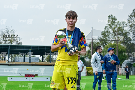 Ciudad de México, 29 de noviembre de 2025. Trofeo de campeón, durante el partido correspondiente a la vuelta de la Gran Final del torneo Apertura 2025 de la Liga BBVA MX categoría Sub15, entre las Águiilas del América y las Chivas Rayadas del Guadalajara, realizado en Coapa. Foto: Imago7/ Alexis Chavez