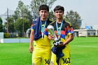 Ciudad de México, 29 de noviembre de 2025. Ernesto Villagran y Jorge Camacho en festejo, durante el partido correspondiente a la vuelta de la Final del torneo Apertura 2025 de la Liga BBVA MX categoría Sub 15, entre las Águilas del América y las Chivas Rayadas del Guadalajara, realizado en Copa. Foto: Imago7/ Mauricio Ruiz
