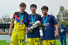 Ciudad de México, 29 de noviembre de 2025. Gustavo Figueroa, Luis Valdez y Marcos Corral, durante el partido correspondiente a la vuelta de la Final del torneo Apertura 2025 de la Liga BBVA MX categoría Sub 15, entre las Águilas del América y las Chivas Rayadas del Guadalajara, realizado en Copa. Foto: Imago7/ Mauricio Ruiz