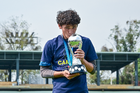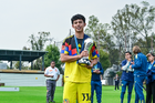 Ciudad de México, 29 de noviembre de 2025. Nicolas Cortes en festejo, durante el partido correspondiente a la vuelta de la Final del torneo Apertura 2025 de la Liga BBVA MX categoría Sub 15, entre las Águilas del América y las Chivas Rayadas del Guadalajara, realizado en Copa. Foto: Imago7/ Mauricio Ruiz