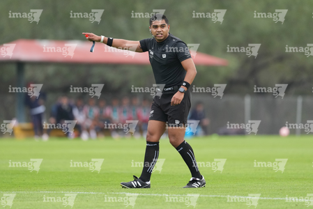 Monterrey, Nuevo León, 22 de noviembre de 2025. Marco Antonio Návez Hernández árbitro central, durante el partido correspondiente a los cuartos de final de vuelta del torneo Apertura 2025 de la Liga BBVA MX categoría Sub21, entre los Tigres de la UANL y las Chivas Rayadas del Guadalajara, celebrado en Zuazua. Foto: Imago7/