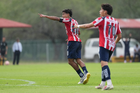 Monterrey, Nuevo León, 22 de noviembre de 2025. Leonardo Torres en festejo de gol, durante el partido correspondiente a los cuartos de final de vuelta del torneo Apertura 2025 de la Liga BBVA MX categoría Sub21, entre los Tigres de la UANL y las Chivas Rayadas del Guadalajara, celebrado en Zuazua. Foto: Imago7/
