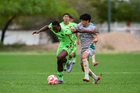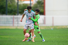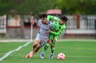 Ciudad Juárez, Chihuahua, 19 de noviembre de 2025. Luis Gómez y Ronaldo Salazar, durante el partido correspondiente a la ida de los cuartos de final del torneo Apertura 2025 de la Liga BBVA MX categoría Sub21, entre los Bravos de FC Juárez y los Guerreros del Santos Laguna, realizado en realizado en el Instituto Tecnológico de Ciudad Juárez. Foto: Imago7/ José Zamora