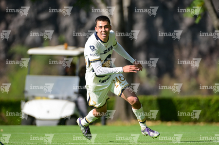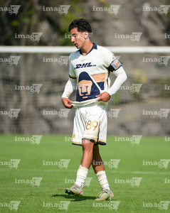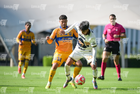 Ciudad de México, 26 de noviembre de 2025. Juan Carrera, durante el partido correspondiente a la semifinal de ida del torneo Apertura 2025 de la Liga BBVA MX categoría Sub21, entre los Pumas de la UNAM y los Tigres de la UANL, realizado en Cantera. Foto: Imago7/Alexis Chavez