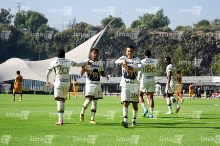 Ciudad de México, 26 de noviembre de 2025. Stanley García en festejo de gol, durante el partido correspondiente a la semifinal de ida del torneo Apertura 2025 de la Liga BBVA MX categoría Sub21, entre los Pumas de la UNAM y los Tigres de la UANL, realizado en Cantera. Foto: Imago7/Alexis Chavez