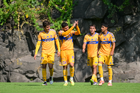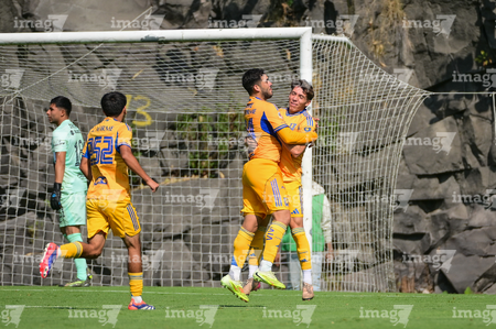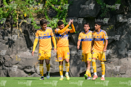 Ciudad de México, 26 de noviembre de 2025. Jugadores de Tigres, durante el partido correspondiente a la semifinal de ida del torneo Apertura 2025 de la Liga BBVA MX categoría Sub21, entre los Pumas de la UNAM y los Tigres de la UANL, realizado en Cantera. Foto: Imago7/Alexis Chavez