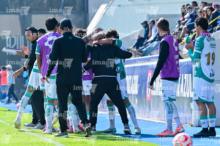 Ciudad de México, 26 de noviembre de 2025. Jugadores de Santos en festejo de gol, durante el partido correspondiente a la ida de la Semifinal del torneo Apertura 2025 de la Liga BBVA MX categoría Sub 21, entre la Máquina Celeste de la Cruz Azul y los Guerreros del Santos Laguna, realizado en La Noria. Foto: Imago7/ Mauricio Ruiz