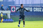 Ciudad de México, 26 de noviembre de 2025. Sergio Barajas en festejo de gol, durante el partido correspondiente a la ida de la Semifinal del torneo Apertura 2025 de la Liga BBVA MX categoría Sub 21, entre la Máquina Celeste de la Cruz Azul y los Guerreros del Santos Laguna, realizado en La Noria. Foto: Imago7/ Mauricio Ruiz