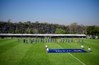 Ciudad de México, 03 de diciembre de 2025. Protocolo, durante el partido correspondiente a la final de ida del torneo Apertura 2025 de la Liga BBVA MX categoría Sub21, entre los Pumas de la UNAM y los Guerreros del Santos Laguna, realizado en Cantera. Foto: Imago7/ Alexis Chavez