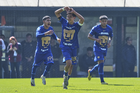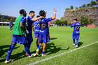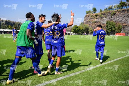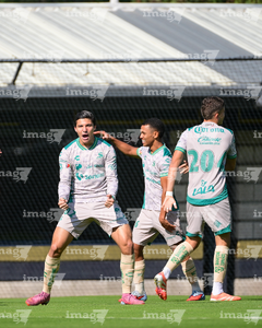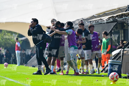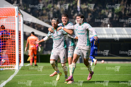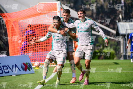 Ciudad de México, 03 de diciembre de 2025. Jugadores del Santos Laguna sub21 en festejo de gol, durante el partido correspondiente a la final de ida del torneo Apertura 2025 de la Liga BBVA MX categoría Sub21, entre los Pumas de la UNAM y los Guerreros del Santos Laguna, realizado en Cantera. Foto: Imago7/ Alexis Chavez