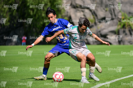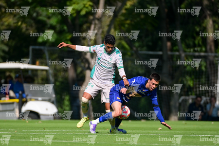 Ciudad de México, 03 de diciembre de 2025. Esteban Garza y Norberto Jimenez, durante el partido correspondiente a la final de ida del torneo Apertura 2025 de la Liga BBVA MX categoría Sub21, entre los Pumas de la UNAM y los Guerreros del Santos Laguna, realizado en Cantera. Foto: Imago7 / Mauricio Ruiz