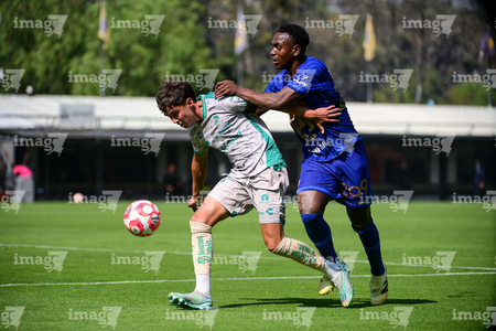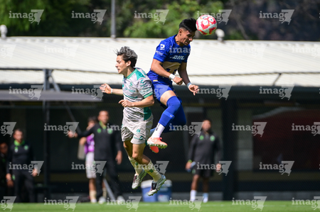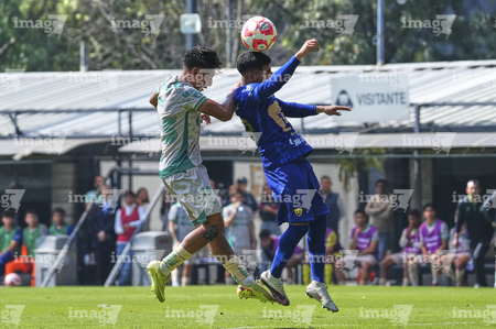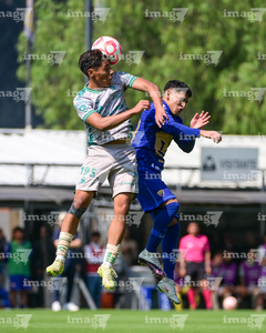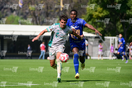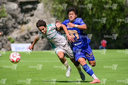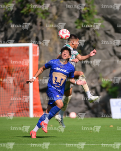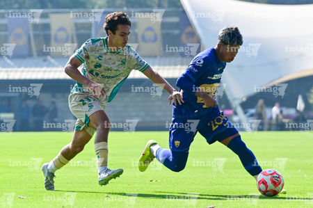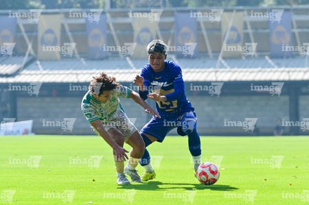 Ciudad de México, 03 de diciembre de 2025. Norberto Jimenez y Juan Tejeda, durante el partido correspondiente a la final de ida del torneo Apertura 2025 de la Liga BBVA MX categoría Sub21, entre los Pumas de la UNAM y los Guerreros del Santos Laguna, realizado en Cantera. Foto: Imago7/ Alexis Chavez
