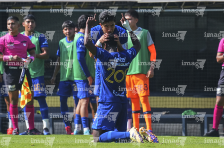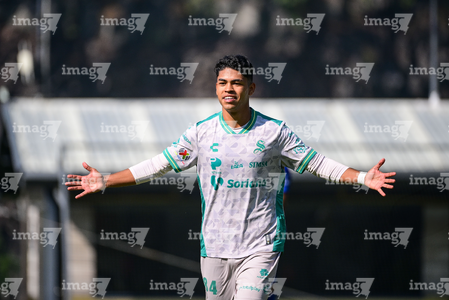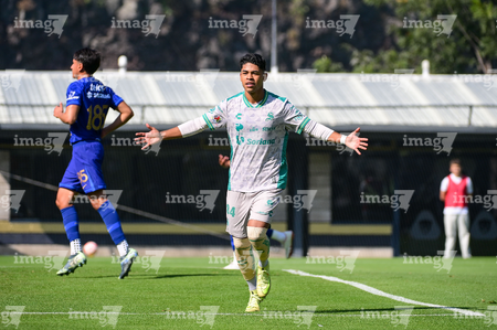 Ciudad de México, 03 de diciembre de 2025. Norberto Jimenez en festejo de gol, durante el partido correspondiente a la final de ida del torneo Apertura 2025 de la Liga BBVA MX categoría Sub21, entre los Pumas de la UNAM y los Guerreros del Santos Laguna, realizado en Cantera. Foto: Imago7/Carlos Vargas