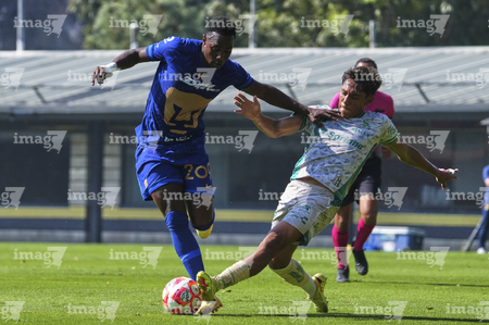 Ciudad de México, 03 de diciembre de 2025. Norberto Jimenez y Tahiel Jiménez, durante el partido correspondiente a la final de ida del torneo Apertura 2025 de la Liga BBVA MX categoría Sub21, entre los Pumas de la UNAM y los Guerreros del Santos Laguna, realizado en Cantera. Foto: Imago7/Carlos Vargas
