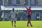 Ciudad de México, 03 de diciembre de 2025. Arneth González resultó expulsado, durante el partido correspondiente a la final de ida del torneo Apertura 2025 de la Liga BBVA MX categoría Sub21, entre los Pumas de la UNAM y los Guerreros del Santos Laguna, realizado en Cantera. Foto: Imago7/Carlos Vargas