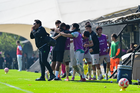 Ciudad de México, 03 de diciembre de 2025. Jugadores de Pumas Sub 21 en festejo, durante el partido correspondiente a la final de ida del torneo Apertura 2025 de la Liga BBVA MX categoría Sub21, entre los Pumas de la UNAM y los Guerreros del Santos Laguna, realizado en Cantera. Foto: Imago7/ Mauricio Ruiz