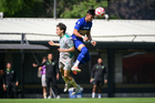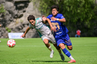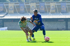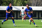 Ciudad de México, 03 de diciembre de 2025. Owen Méndez y Sebastián Venegas, durante el partido correspondiente a la final de ida del torneo Apertura 2025 de la Liga BBVA MX categoría Sub21, entre los Pumas de la UNAM y los Guerreros del Santos Laguna, realizado en Cantera. Foto: Imago7/ Alexis Chavez