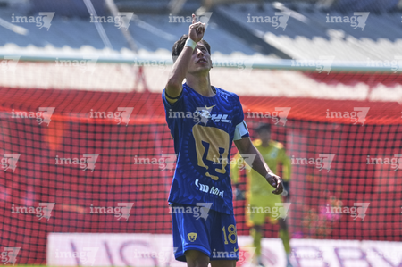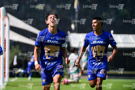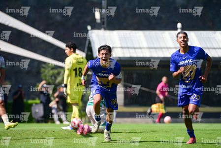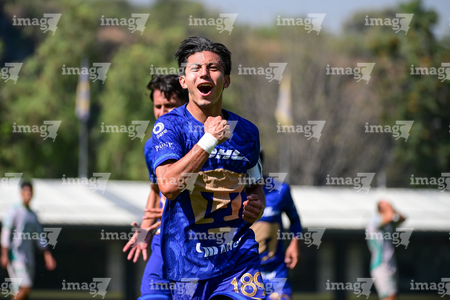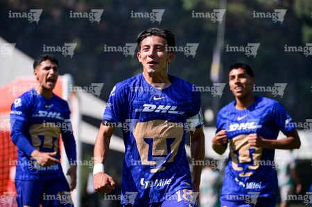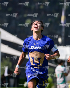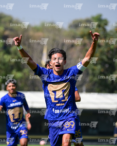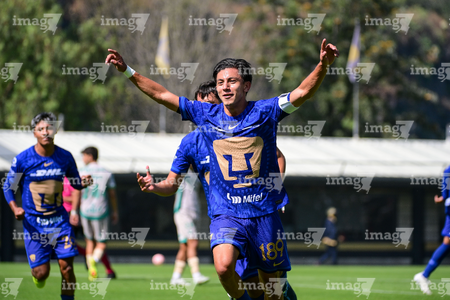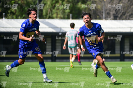 Ciudad de México, 03 de diciembre de 2025. Norberto Jimenez en festejo de gol, durante el partido correspondiente a la final de ida del torneo Apertura 2025 de la Liga BBVA MX categoría Sub21, entre los Pumas de la UNAM y los Guerreros del Santos Laguna, realizado en Cantera. Foto: Imago7/ Alexis Chavez
