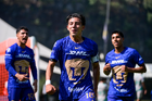 Ciudad de México, 03 de diciembre de 2025. Luis Mascareño en festejo de gol, durante el partido correspondiente a la final de ida del torneo Apertura 2025 de la Liga BBVA MX categoría Sub21, entre los Pumas de la UNAM y los Guerreros del Santos Laguna, realizado en Cantera. Foto: Imago7/ Alexis Chavez