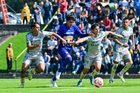 Ciudad de México, 03 de diciembre de 2025. Manuel Sánchez y Tahiel Jiménez, durante el partido correspondiente a la final de ida del torneo Apertura 2025 de la Liga BBVA MX categoría Sub21, entre los Pumas de la UNAM y los Guerreros del Santos Laguna, realizado en Cantera. Foto: Imago7/ Alexis Chavez