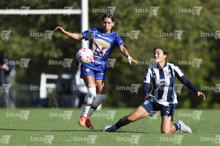 Santiago, Nuevo León, 12 de noviembre de 2025. , durante el partido correspondiente a los Cuartos de Final del torneo Apertura 2025 de la Liga BBVA MX Femenil categoría Sub19, entre las Rayadas del Monterrey y las Pumas de la UNAM, realizado en El Barrial. Foto: Imago7/