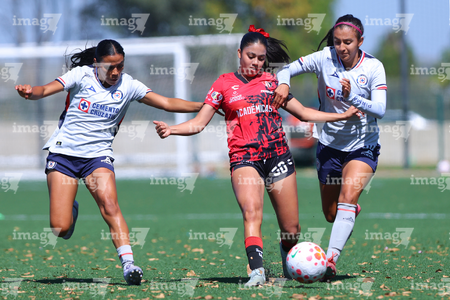 Guadalajara, Jalisco, 12 de noviembre de 2025. , durante el partido correspondiente a los Cuartos de Final del torneo Apertura 2025 de la Liga BBVA MX Femenil categoría Sub19, entre las Rojinegras del Atlas y la Máquina Celeste del Cruz Azul, realizado en la Academia AGA. Foto: Imago7/ Juan Carlos Cubeyro