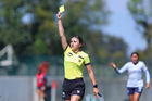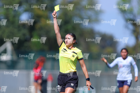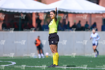 Guadalajara, Jalisco, 12 de noviembre de 2025. Estéfany Gómez, Árbitro Central, durante el partido correspondiente a los Cuartos de Final del torneo Apertura 2025 de la Liga BBVA MX Femenil categoría Sub19, entre las Rojinegras del Atlas y la Máquina Celeste del Cruz Azul, realizado en la Academia AGA. Foto: Imago7/ Juan Carlos Cubeyro.
