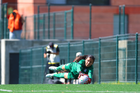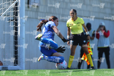Guadalajara, Jalisco, 12 de noviembre de 2025. Dayana Covarrubias ataja penal, durante el partido correspondiente a los Cuartos de Final del torneo Apertura 2025 de la Liga BBVA MX Femenil categoría Sub19, entre las Rojinegras del Atlas y la Máquina Celeste del Cruz Azul, realizado en la Academia AGA. Foto: Imago7/ Juan Carlos Cubeyro.