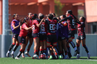 Guadalajara, Jalisco, 12 de noviembre de 2025. Jugadoras de Atlas en festejo de gol, durante el partido correspondiente a los Cuartos de Final del torneo Apertura 2025 de la Liga BBVA MX Femenil categoría Sub19, entre las Rojinegras del Atlas y la MáquinaCeleste del Cruz Azul, realizado en la Academia AGA. Foto: Imago7/ Juan Carlos Cubeyro.