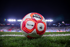 Pachuca, Hidalgo, 20 de noviembre de 2025. Balón de futbol Voit Aereus, durante el partido correspondiente al Play In del torneo Apertura 2025 de la Liga BBVA MX, entre los Tuzos del Pachuca y los Pumas de la UNAM, realizado en el estadio Hidalgo. Foto: Imago7/ Elizabeth Hernández