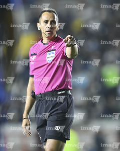 Pachuca, Hidalgo, 20 de noviembre de 2025. Luis Enrique Santander, árbitro central, durante el partido correspondiente al Play In del torneo Apertura 2025 de la Liga BBVA MX, entre los Tuzos del Pachuca y los Pumas de la UNAM, realizado en el estadio Hidalgo. Foto: Imago7/ Etzel Espinosa