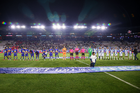 Pachuca, Hidalgo, 20 de noviembre de 2025. Protocolo, durante el partido correspondiente al Play In del torneo Apertura 2025 de la Liga BBVA MX, entre los Tuzos del Pachuca y los Pumas de la UNAM, realizado en el estadio Hidalgo. Foto: Imago7/ Elizabeth Hernández