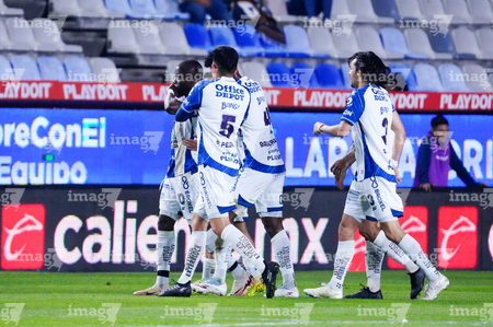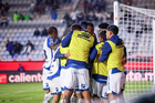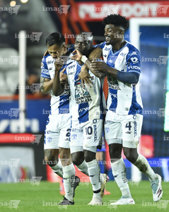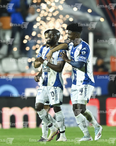 Pachuca, Hidalgo, 20 de noviembre de 2025. Jugadores de Pachuca en festejo de gol, durante el partido correspondiente al Play In del torneo Apertura 2025 de la Liga BBVA MX, entre los Tuzos del Pachuca y los Pumas de la UNAM, realizado en el estadio Hidalgo. Foto: Imago7/ Elizabeth Hernández