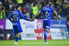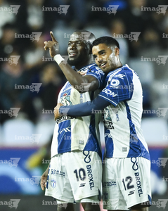 Pachuca, Hidalgo, 20 de noviembre de 2025. Enner Valencia y Robert Kenedy en festejo de gol, durante el partido correspondiente al Play In del torneo Apertura 2025 de la Liga BBVA MX, entre los Tuzos del Pachuca y los Pumas de la UNAM, realizado en el estadio Hidalgo. Foto: Imago7/ Elizabeth Hernández