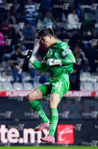 Pachuca, Hidalgo, 20 de noviembre de 2025. Carlos Moreno en festejo, durante el partido correspondiente al Play In del torneo Apertura 2025 de la Liga BBVA MX, entre los Tuzos del Pachuca y los Pumas de la UNAM, realizado en el estadio Hidalgo. Foto: Imago7/ Elizabeth Hernández