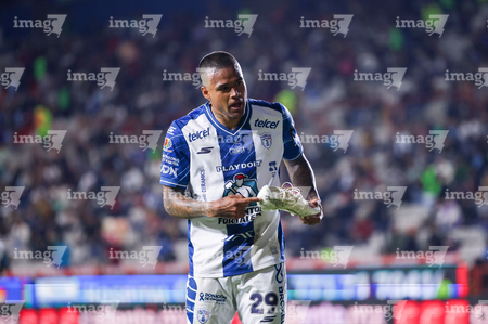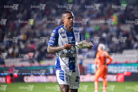 Pachuca, Hidalgo, 20 de noviembre de 2025. Alvaro Angulo, durante el partido correspondiente al Play In del torneo Apertura 2025 de la Liga BBVA MX, entre los Tuzos del Pachuca y los Pumas de la UNAM, realizado en el estadio Hidalgo. Foto: Imago7/ Elizabeth Hernández