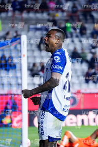 Pachuca, Hidalgo, 20 de noviembre de 2025. Robert Kenedy en festejo de gol, durante el partido correspondiente al Play In del torneo Apertura 2025 de la Liga BBVA MX, entre los Tuzos del Pachuca y los Pumas de la UNAM, realizado en el estadio Hidalgo. Foto: Imago7/ Jacqueline Pedraza