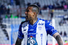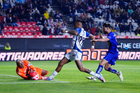 Pachuca, Hidalgo, 20 de noviembre de 2025. Robert Kenedy anota gol, durante el partido correspondiente al Play In del torneo Apertura 2025 de la Liga BBVA MX, entre los Tuzos del Pachuca y los Pumas de la UNAM, realizado en el estadio Hidalgo. Foto: Imago7/ Jacqueline Pedraza
