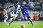 Pachuca, Hidalgo, 20 de noviembre de 2025. José Caicedo, durante el partido correspondiente al Play In del torneo Apertura 2025 de la Liga BBVA MX, entre los Tuzos del Pachuca y los Pumas de la UNAM, realizado en el estadio Hidalgo. Foto: Imago7/ Etzel Espinosa