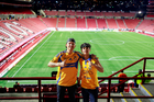 Tijuana, Baja California, 26 de noviembre de 2025. Diego Lainez y Jesús Vega, durante el partido correspondiente a la ida de los Cuartos de Final del torneo Apertura 2025 de la Liga BBVA MX, entre los Xolos de Tijuana y los Tigres de la UANL, realizado en el estadio Caliente. Foto: Imago7/Alejandro Gutiérrez Mora