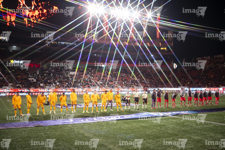 Tijuana, Baja California, 26 de noviembre de 2025. Protocolo, durante el partido correspondiente a la ida de los Cuartos de Final del torneo Apertura 2025 de la Liga BBVA MX, entre los Xolos de Tijuana y los Tigres de la UANL, realizado en el estadio Caliente. Foto: Imago7/Alejandro Gutiérrez Mora