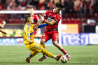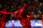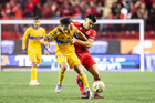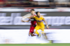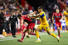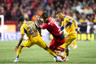 Tijuana, Baja California, 26 de noviembre de 2025. André-pierre Gignac y Iván Tona, durante el partido correspondiente a la ida de los Cuartos de Final del torneo Apertura 2025 de la Liga BBVA MX, entre los Xolos de Tijuana y los Tigres de la UANL, realizado en el estadio Caliente. Foto: Imago7/Alejandro Gutiérrez Mora