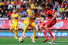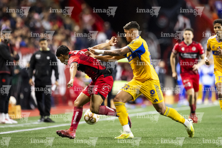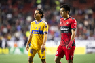 Tijuana, Baja California, 26 de noviembre de 2025. Ángel Correa y Unai Bilbao, durante el partido correspondiente a la ida de los Cuartos de Final del torneo Apertura 2025 de la Liga BBVA MX, entre los Xolos de Tijuana y los Tigres de la UANL, realizado en el estadio Caliente. Foto: Imago7/Agustín Reyes