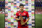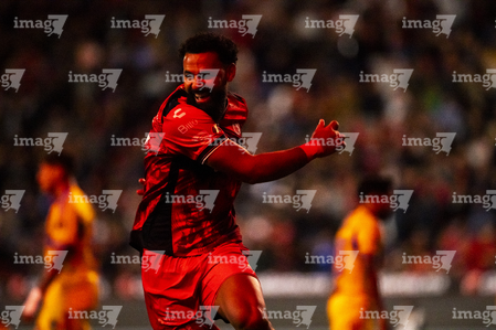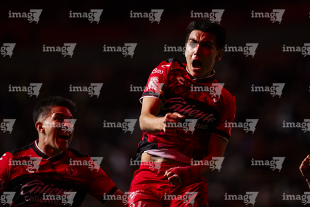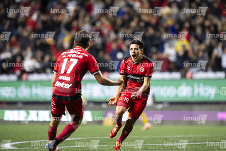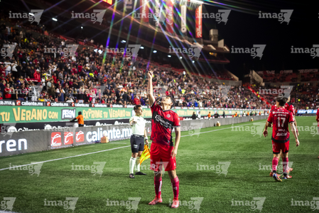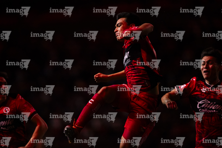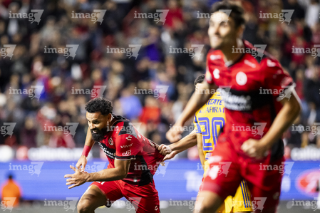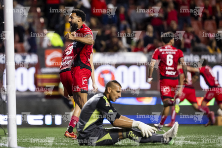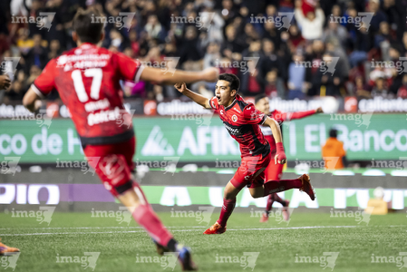 Tijuana, Baja California, 26 de noviembre de 2025. Kevin Castañeda en festejo de gol, durante el partido correspondiente a la ida de los Cuartos de Final del torneo Apertura 2025 de la Liga BBVA MX, entre los Xolos de Tijuana y los Tigres de la UANL, realizado en el estadio Caliente. Foto: Imago7/Alejandro Gutiérrez Mora