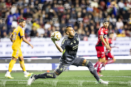 Tijuana, Baja California, 26 de noviembre de 2025. Portigoles, durante el partido correspondiente a la ida de los Cuartos de Final del torneo Apertura 2025 de la Liga BBVA MX, entre los Xolos de Tijuana y los Tigres de la UANL, realizado en el estadio Caliente. Foto: Imago7/Agustín Reyes