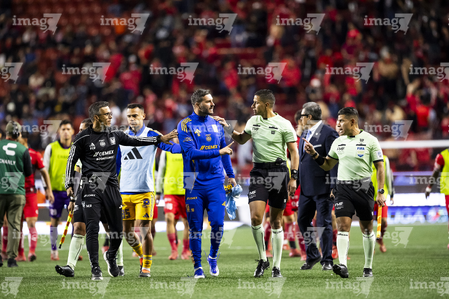 Tijuana, Baja California, 26 de noviembre de 2025. Portigoles, durante el partido correspondiente a la ida de los Cuartos de Final del torneo Apertura 2025 de la Liga BBVA MX, entre los Xolos de Tijuana y los Tigres de la UANL, realizado en el estadio Caliente. Foto: Imago7/