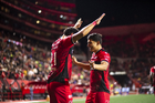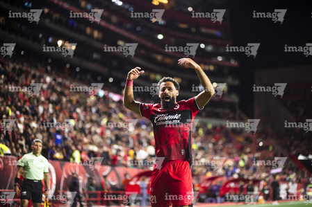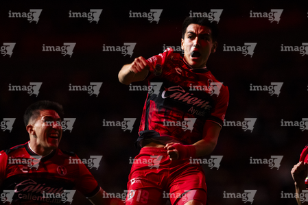 Tijuana, Baja California, 26 de noviembre de 2025. José Antonio Rodríguez en festejo, durante el partido correspondiente a la ida de los Cuartos de Final del torneo Apertura 2025 de la Liga BBVA MX, entre los Xolos de Tijuana y los Tigres de la UANL, realizado en el estadio Caliente. Foto: Imago7/Agustín Reyes